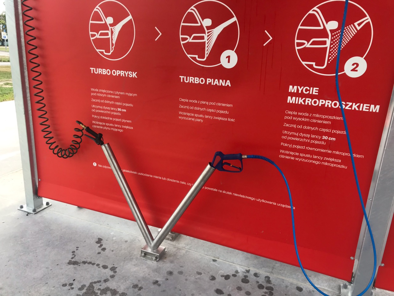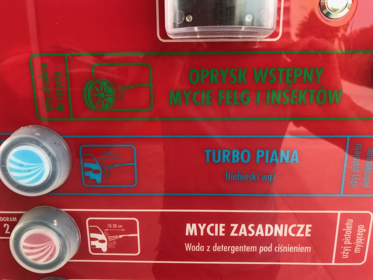 Programy: 6 PROGRAMÓW : OPRYSK FELG ( NOWOŚĆ ) ,TURBOPIANA (NOWOŚĆ) MYCIE ZASADNICZE , SPŁUKIWANIE ,WOSK ,WODA ZDEMINERALIZOWANA ,PŁUKANIE KOŃCOWE (OSMOZA)