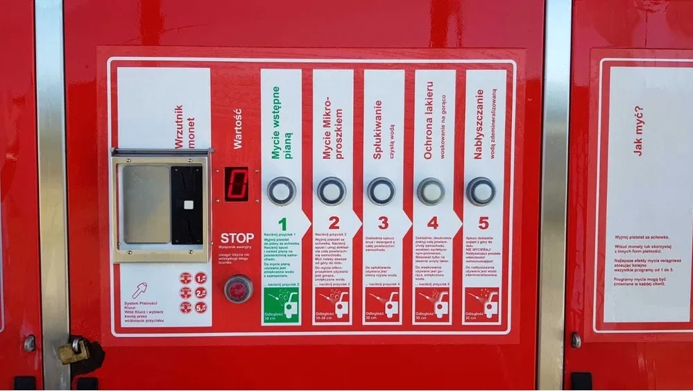 5 programów mycia z pianą aktywną. Możliwość dzierżawy terenu. Działka 1000 metrów kwadratowych z pełnym uzbrojeniem.